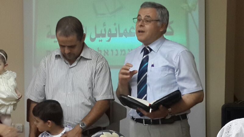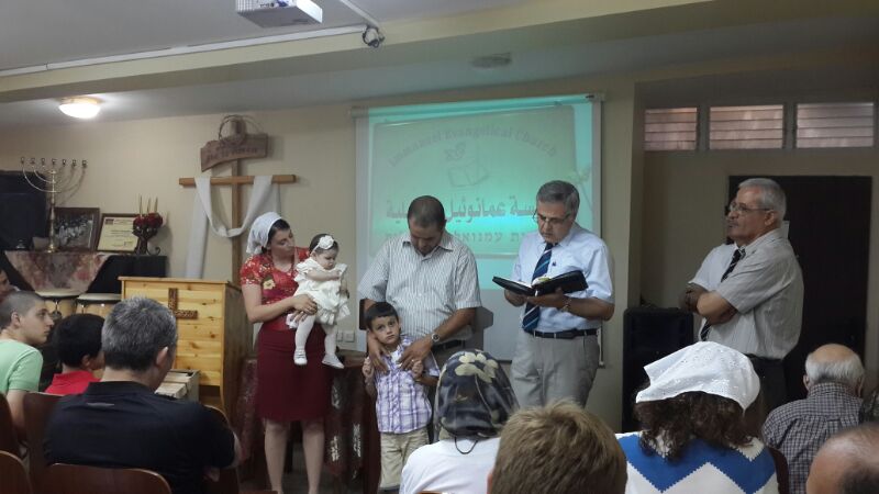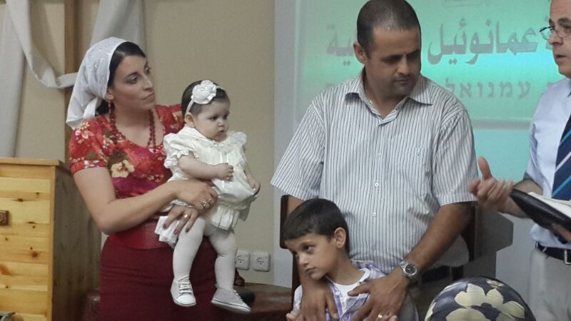 قام القس نشأة حداد ضيف كنيسة عمانوئيل وهو راعٍي كنيسة يسوع نور العالم في مدينة لودفسبورغ القريبة من شتوتكارت ، وهي كنيسة ناطقة باللغة العربية، ويعمل ايضا رئيس الاتحاد الانجيلي للناطقين باللغة العربية في اوروبا بالاضافة الى راعي الكنيسة القس نجيب عطية بتكريس الطفلين من خلال قراءة من الكتاب المقدس من انجيل متى 19 : 13 - 14