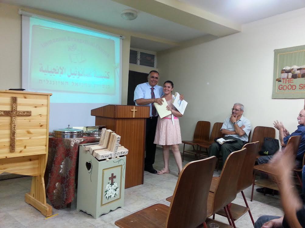 كنيسة عمانوئيل الانجيلية حيفا تقوم باحتفال ما بعد المعمودية وتقديم شهادات المعمودية مع هدايا للمعتمدين يوم الاحد الموافق 08.06.2014.
