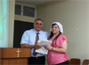 ومن ثم قدم الشهادات للاعضاء الذين كانوا في الاجتماع وتم تقديم لهم هدية " الكتاب المقدس".