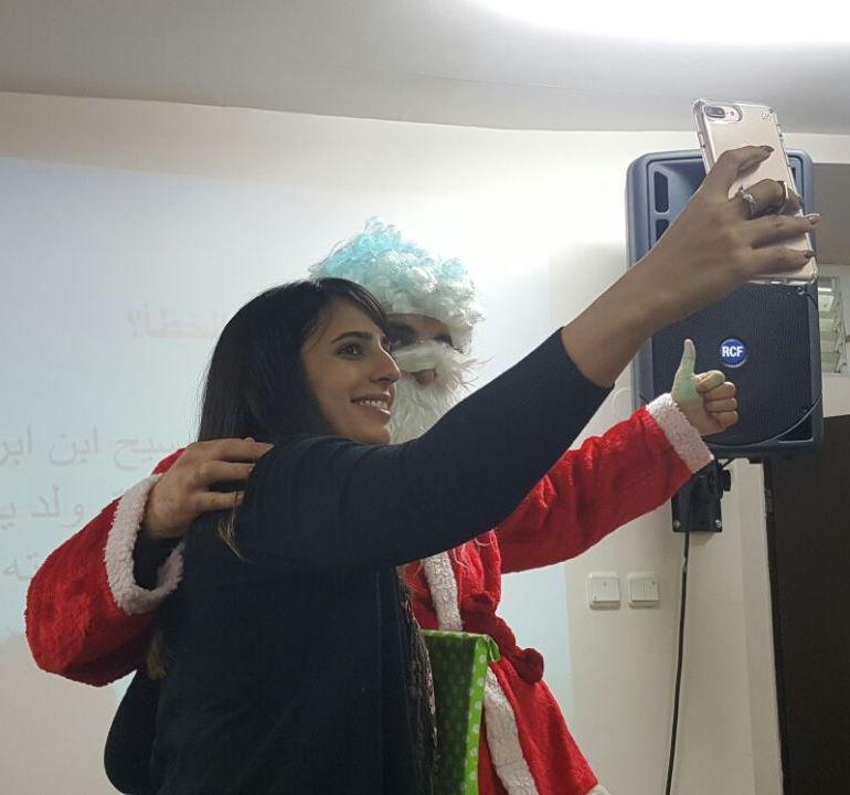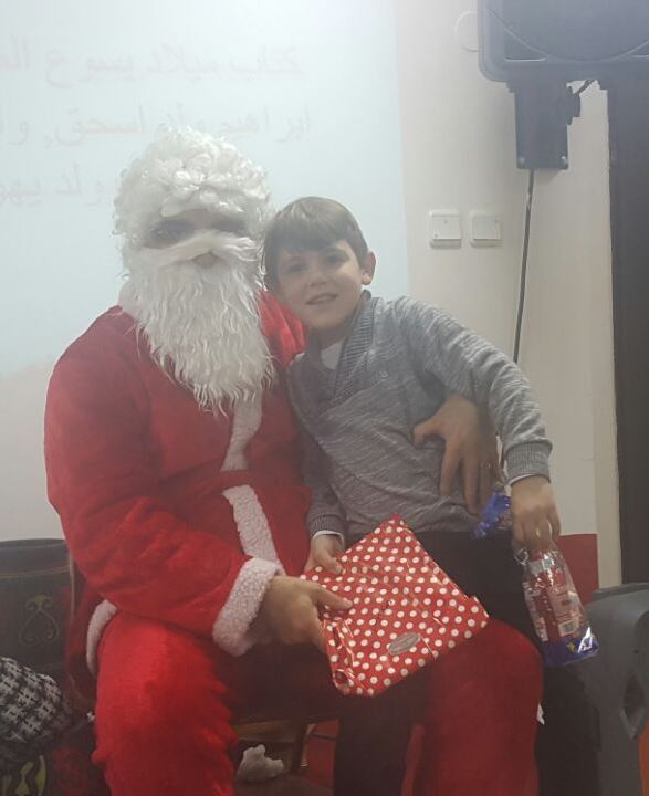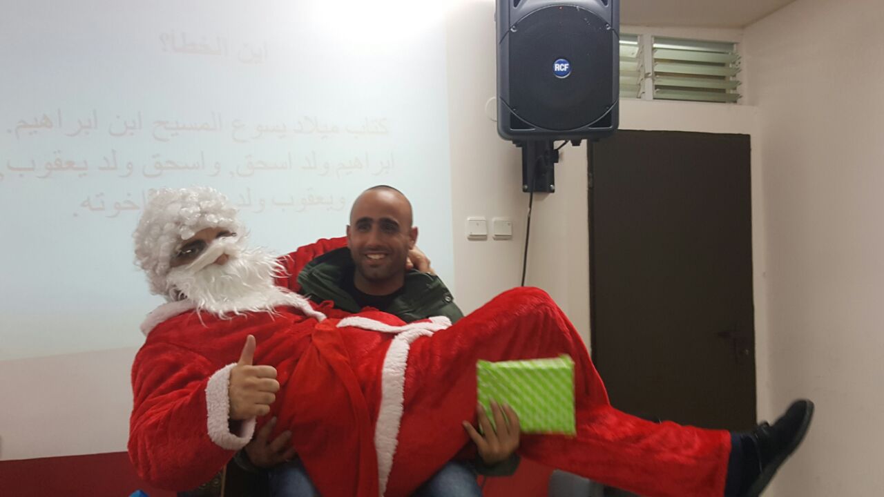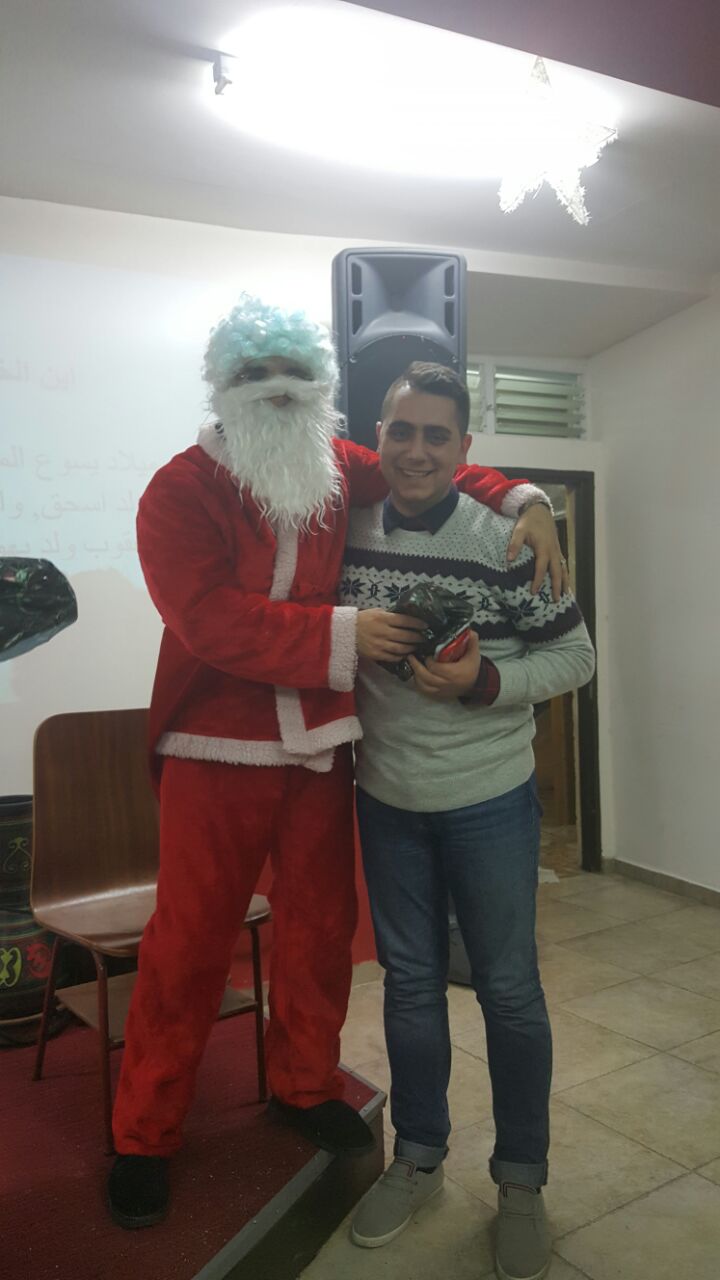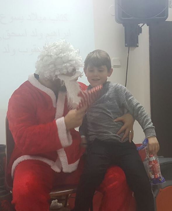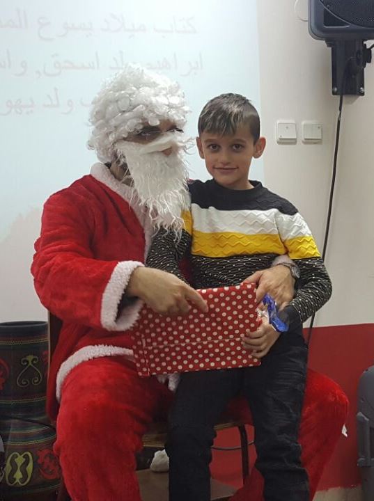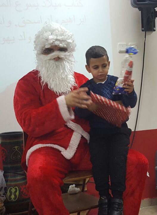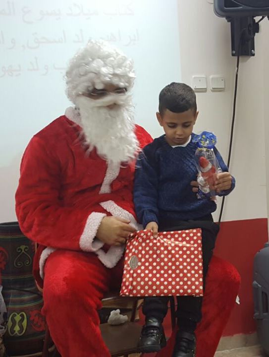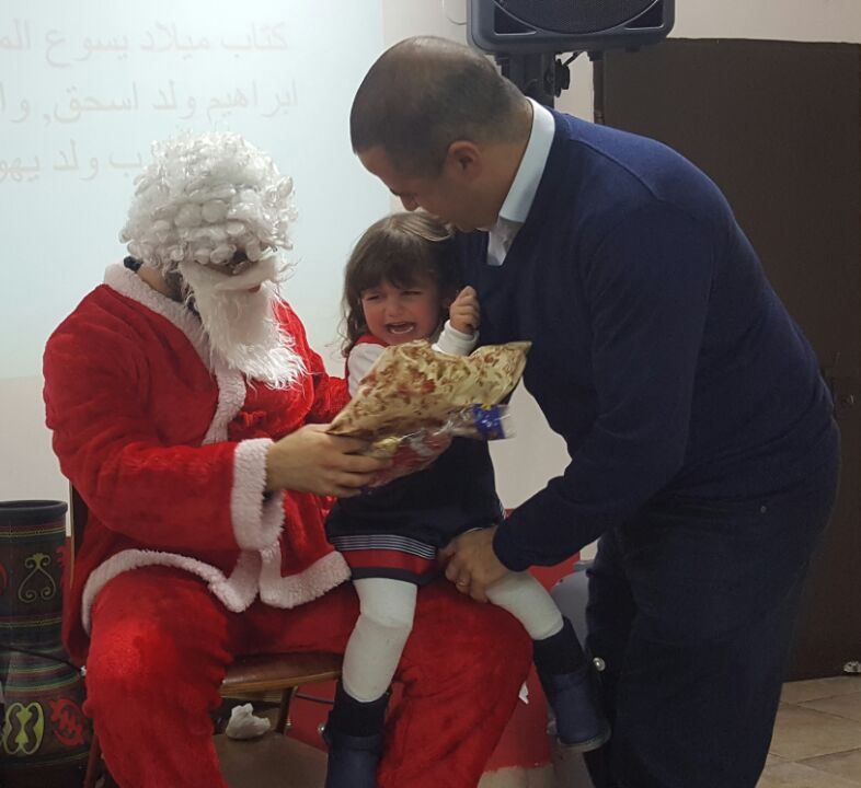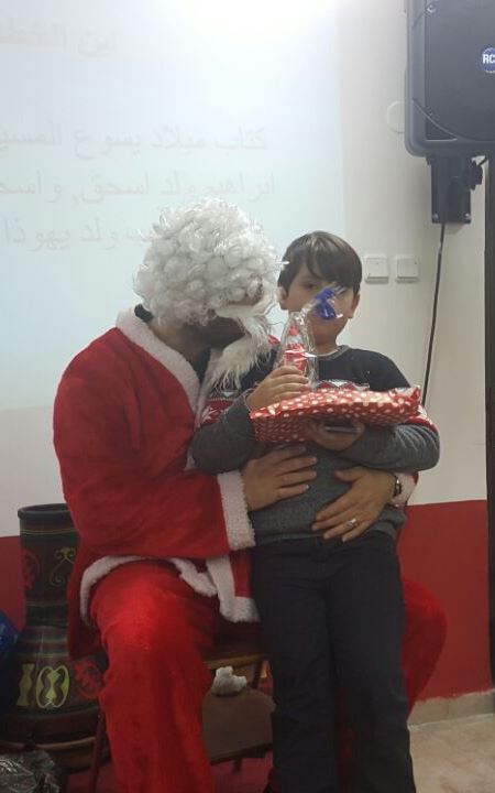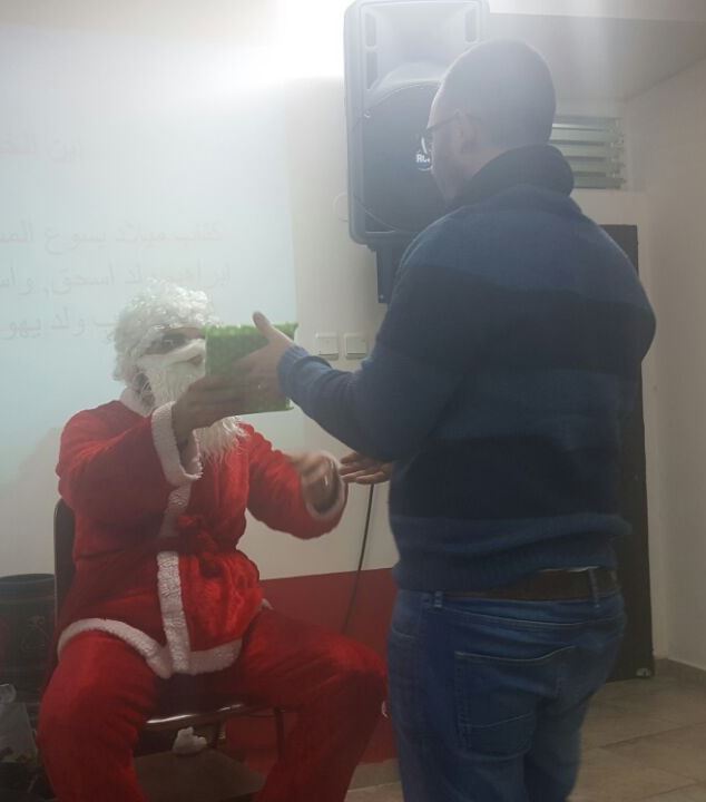 بالنهاية حضر "بابا نويل" لتقديم الهدايا للاخوة والاطفال المشاركين في الامسية.