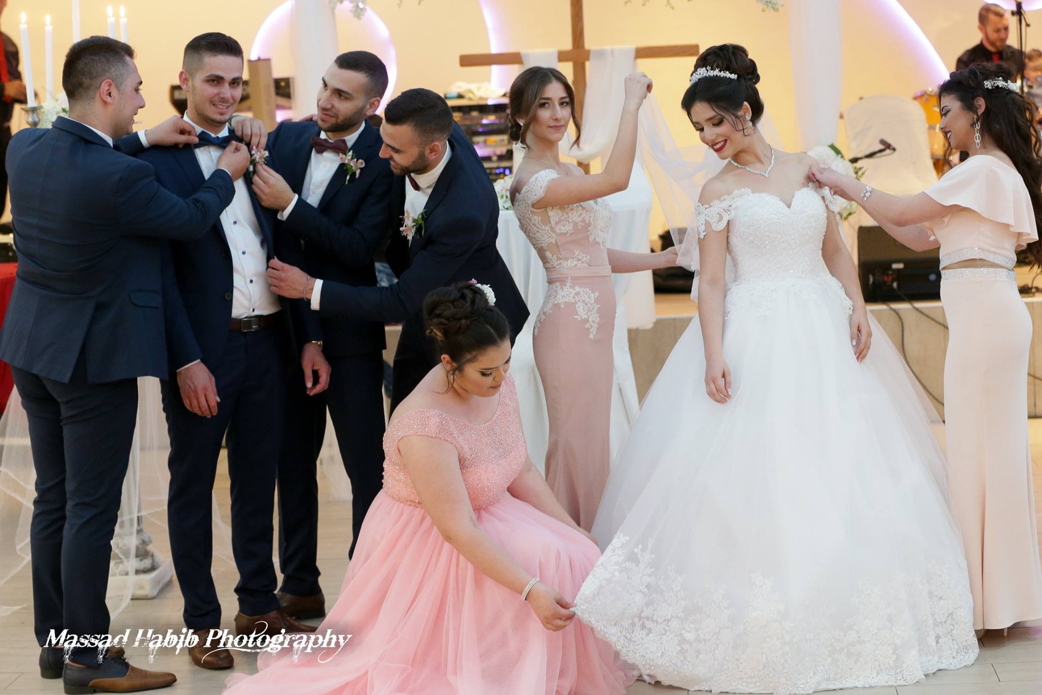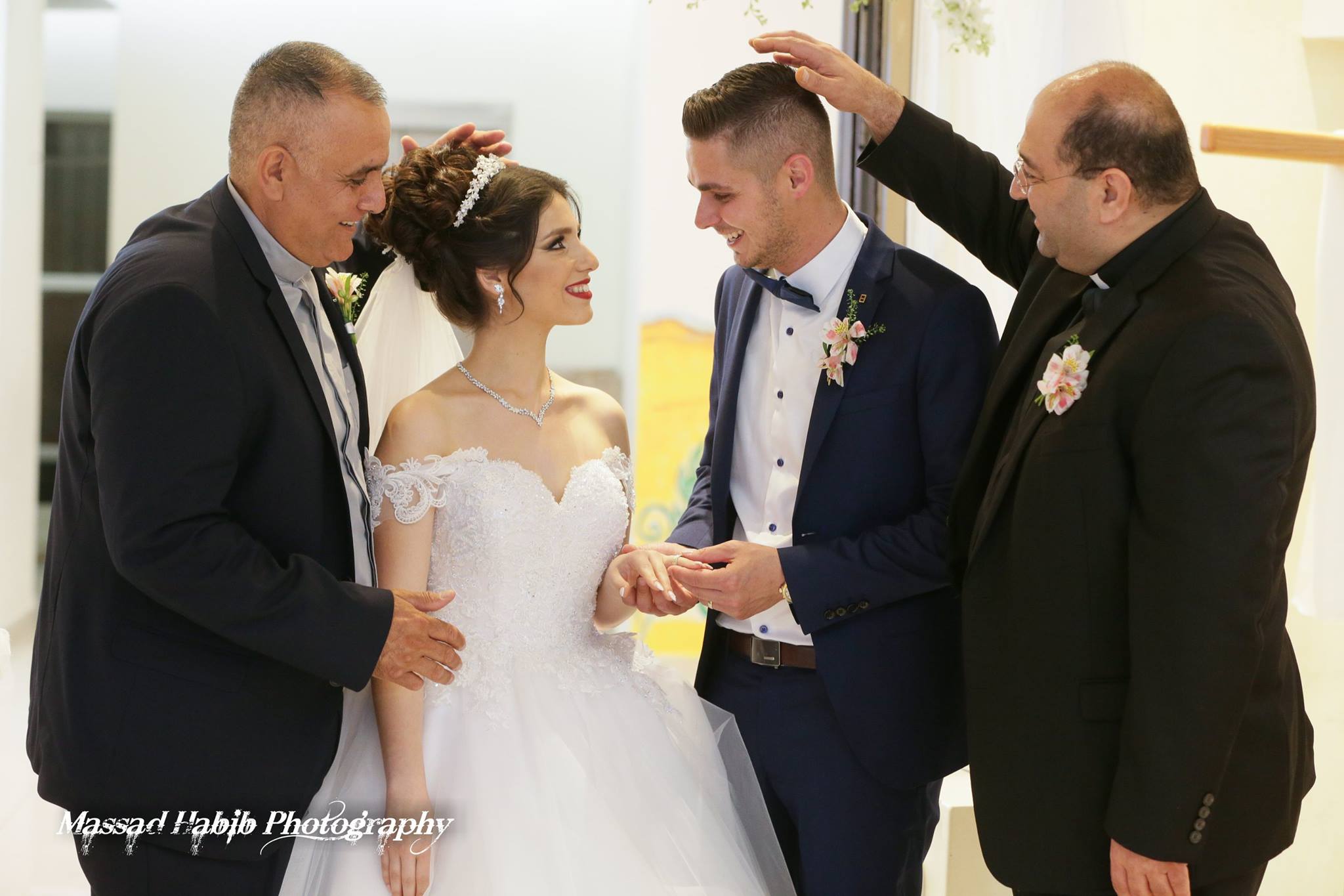 قام بمراسيم الزواج راعي الكنيسة القس نجيب عطية بالاضافة الى راعي كنيسة عمانوئيل الانجيلية بيت لحم القس نهاد سلمان. وشارك بالترانيم مرنمو الكنيسة الاخ بشارة سخنيني مع العازفين.