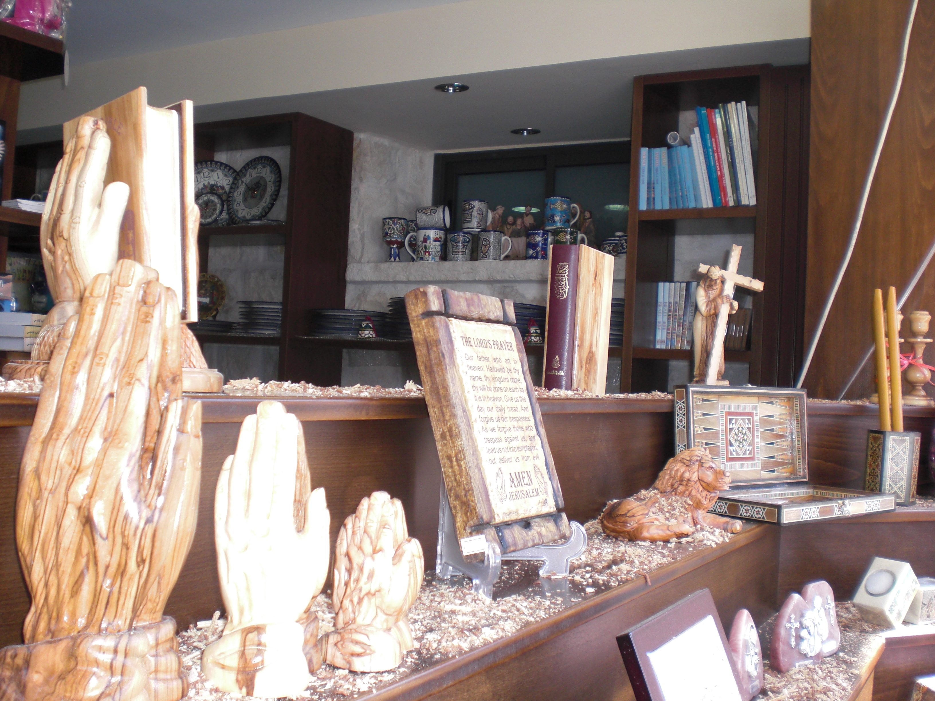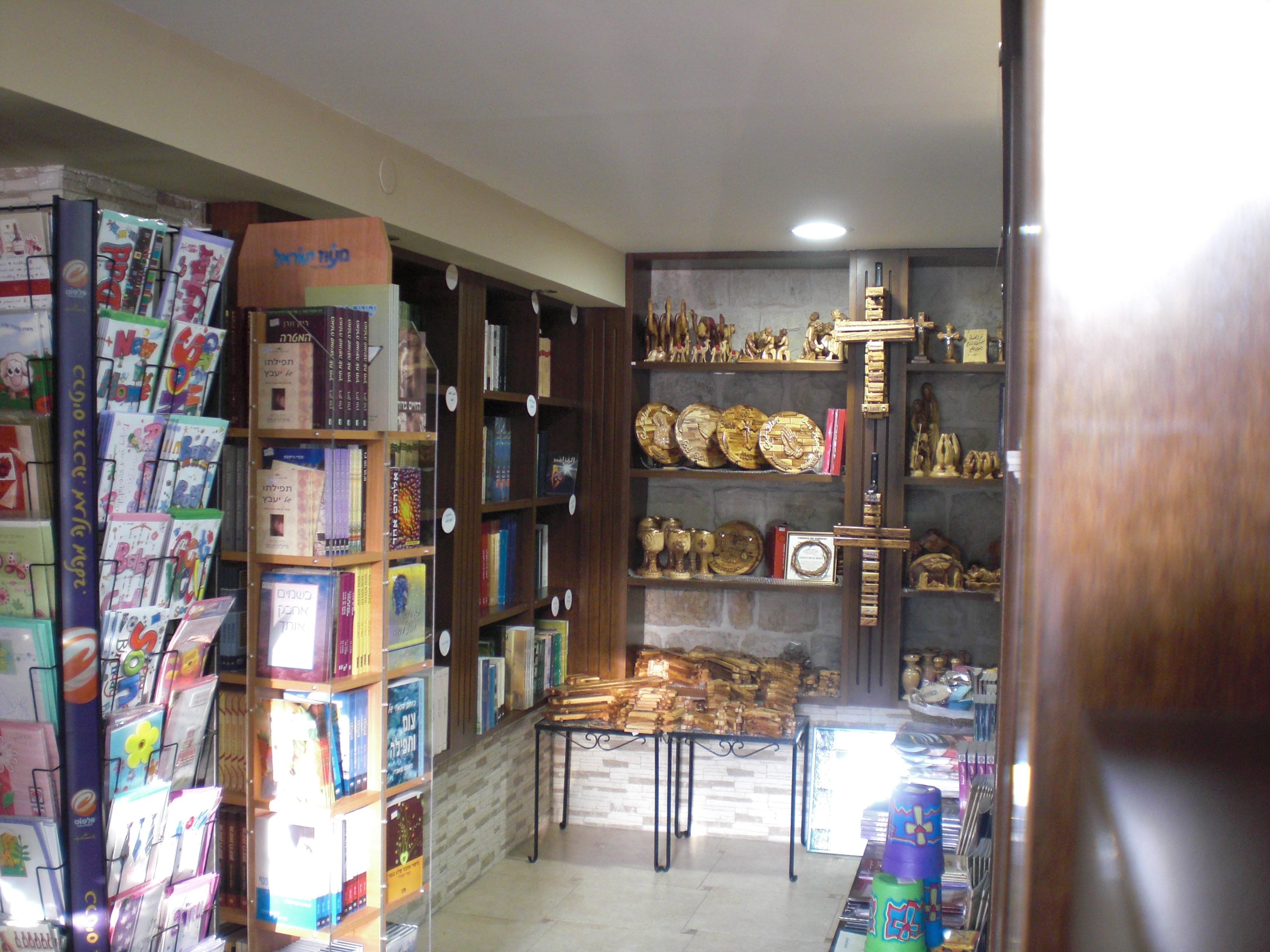 في المكتبة أناجيل ، كتب مسيحية ، أقراص ترانيم ، أشرطة فيديو باللغة العربية إضافة الى اللغة العبرية والانجليزية ، فيها أيضًا مجموعة كبيرة من السلع التي يحتاج اليها السائح يهوديًا كان أم مسيحيًّا فهناك مجموعة كبيرة من بطاقات المعايدة تلائم جميع المواسم والمناسبات الخاصة ومعروضات مسيحيّة كثيرة ومتنوعة .